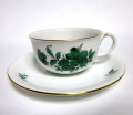 鮮やかなもみの木が描かれ、緑一色で描かれるアウガルテンの芸術的シリーズ。落ち着きのある洗練されたマリアテレジアはウィーン窯を代表する作品です。
