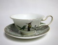 躍動感あふれるハチドリが綺麗なカップで、それとは対象的なシックなソーサーも見事です。